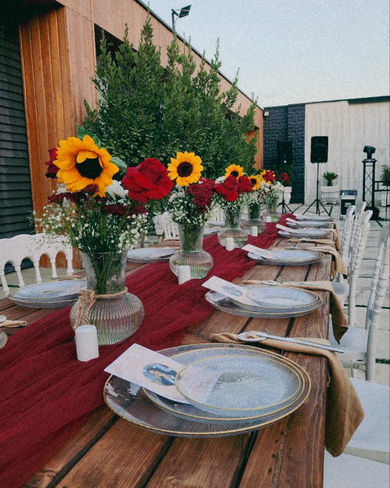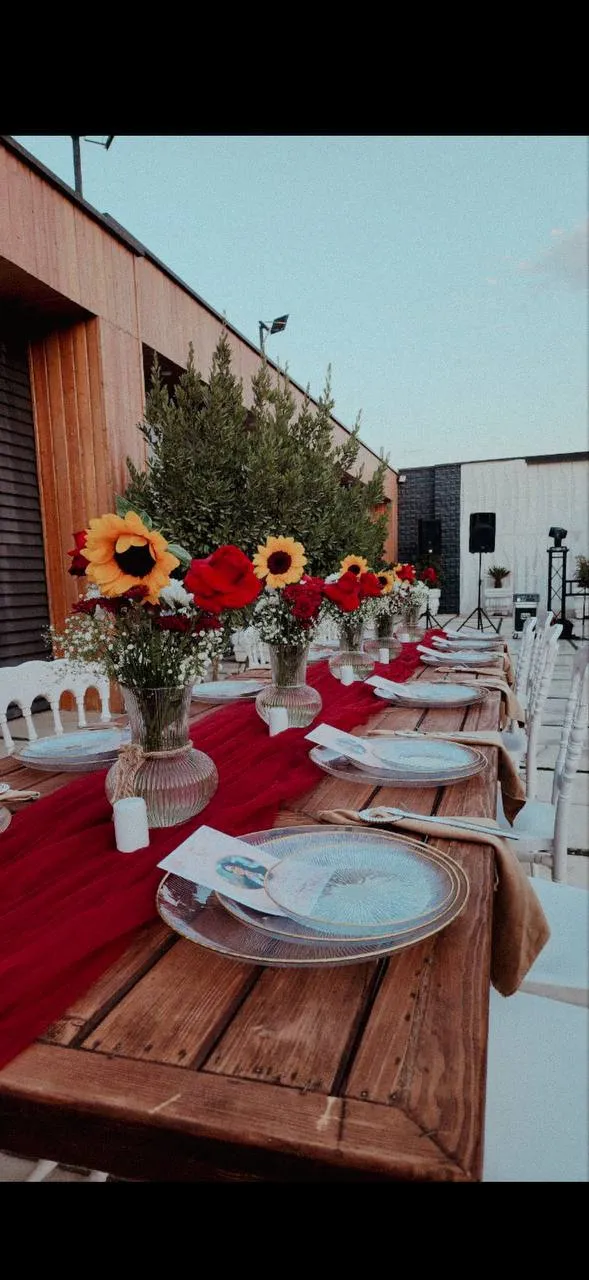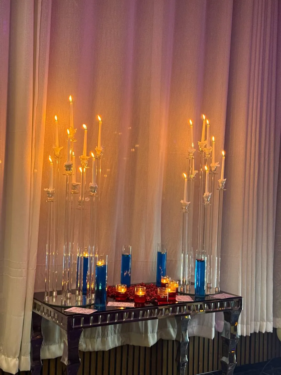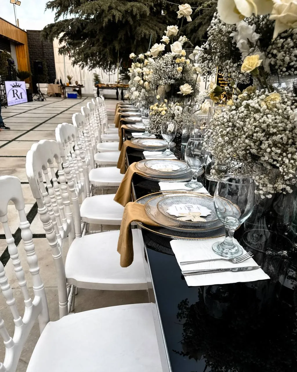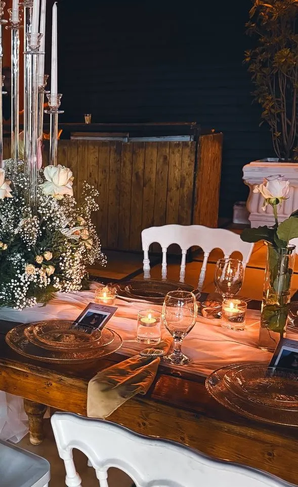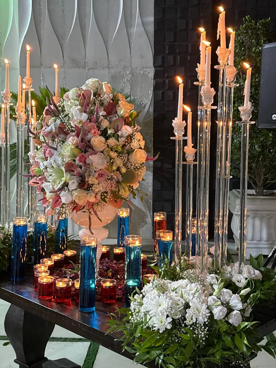 دیزاین تخصصی فضا، میزها و ورودی با گلهای طبیعی و شمعهای تزیینی خاص و منحصربهفرد. این متن به صورت کامل نمایش داده میشود و ارتفاع کارت را مشخص میکند.