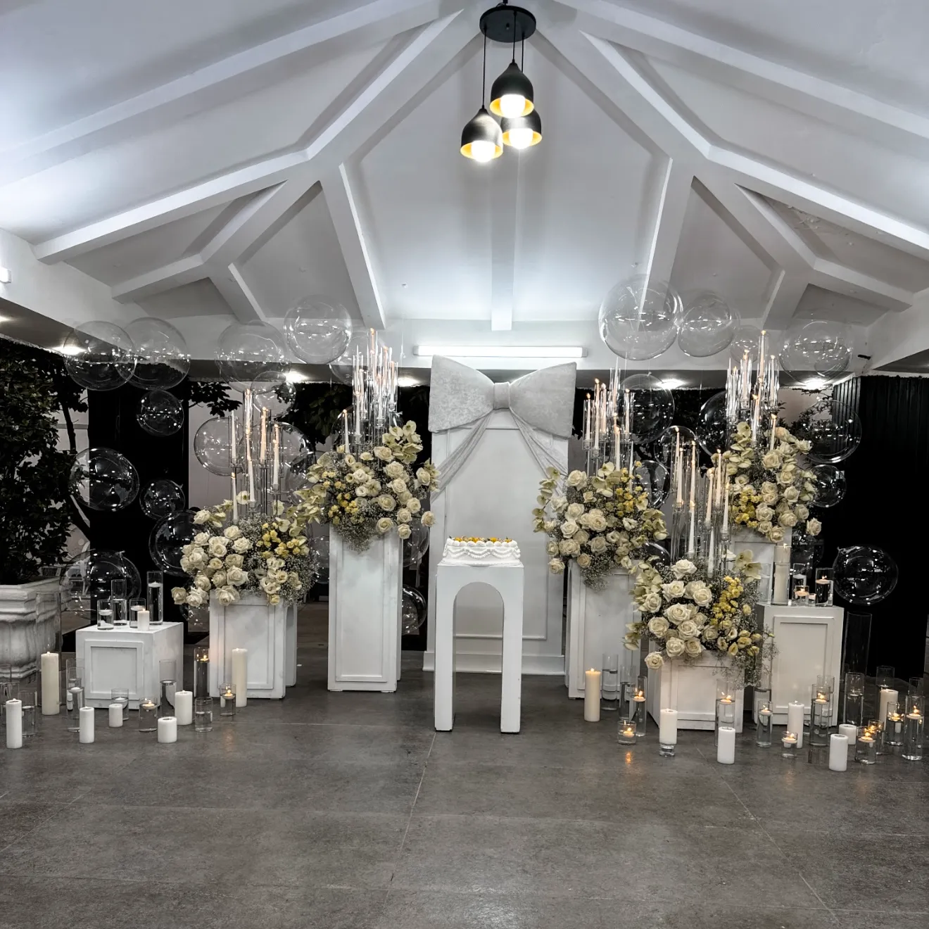 اجرای کامل مراسم از صفر تا صد با شکوه تمام، مطابق با سلیقه شما. طراحی خاص فضای عقد و جایگاه عروس و داماد.