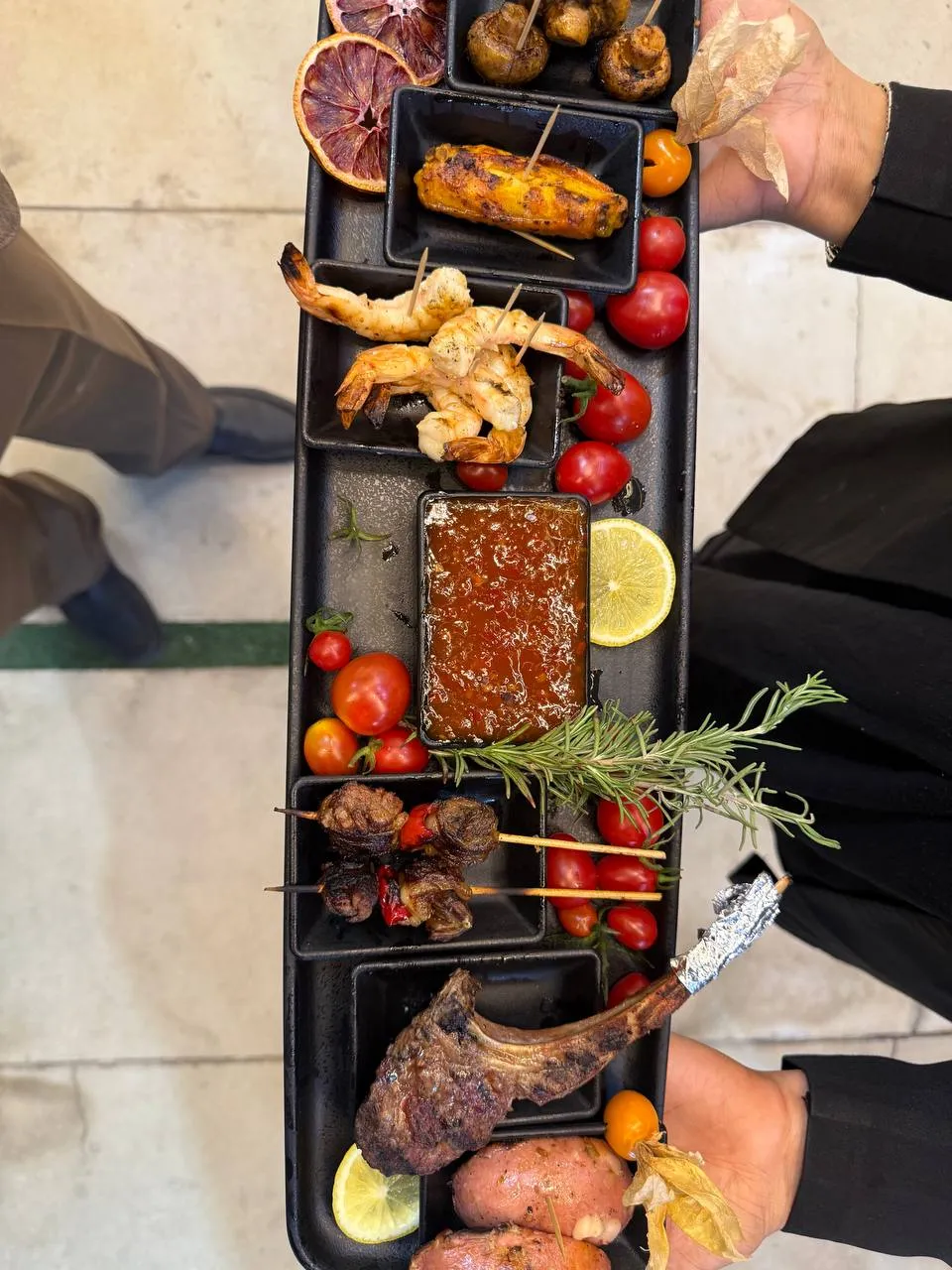 - سالاد و نوشیدنی سلف: ۵ نوع سالاد (سزار، بندری، ماست و خیار، فصل، پاستا قفقازی) + نوشابه، دوغ، دلستر، آب معدنی
