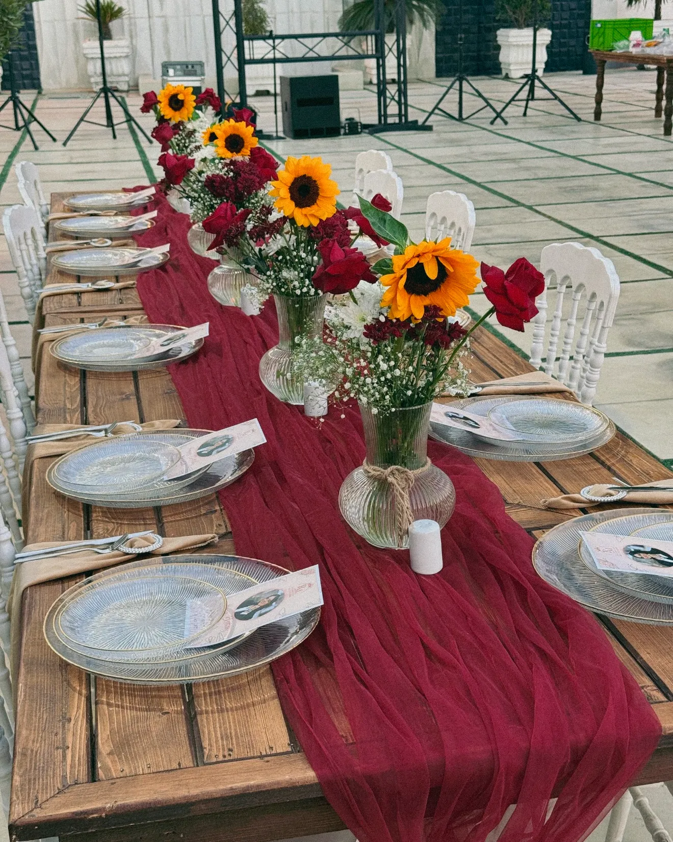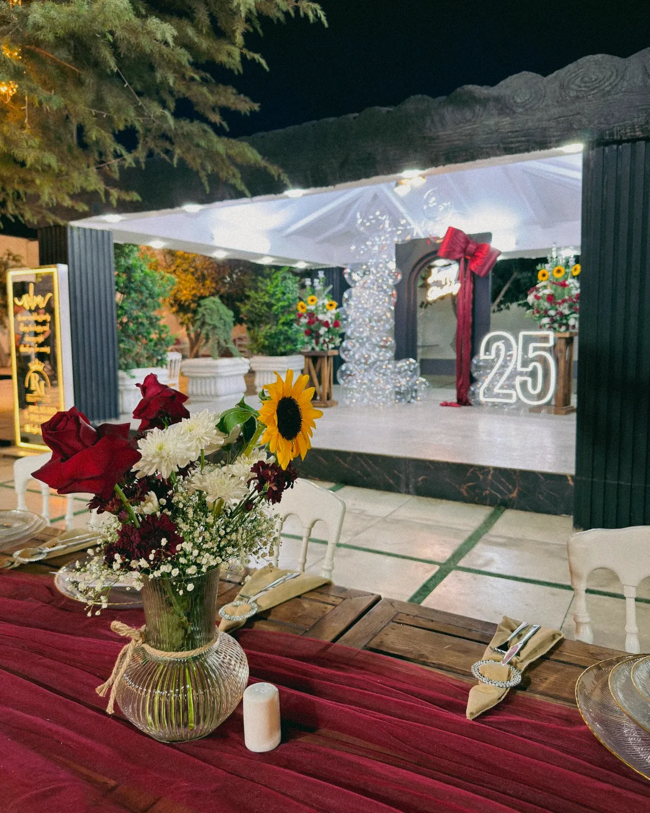 - گلآرایی: مصنوعی با کاپ روی میزهای مهمان و کاپ میوه و شیرینی